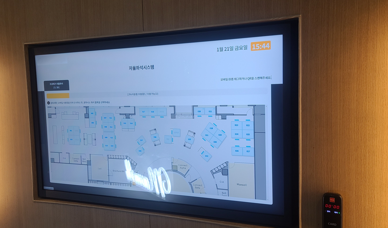 전자명패는 좌석에 배치해, 현재 좌석을 이용중인 사람에 대한 정보를 표시해주는 서비스입니다.